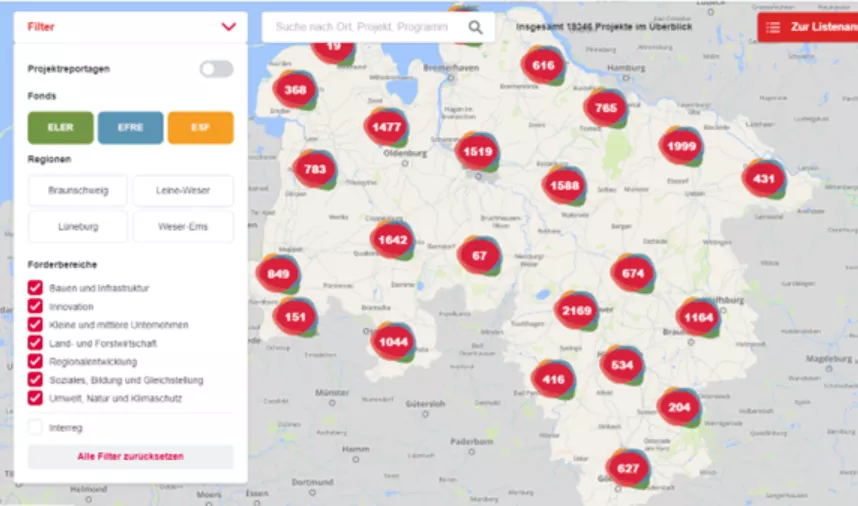- joint public relation work: Europe for Lower Saxony (homepage, interactive project atlas etc.) and joint activities, such as regional dialogues for simplification and reduction of administrative burden.